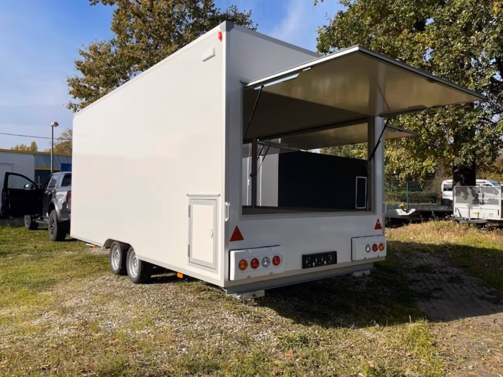 – 2 große Verkaufsklappen mit Gasfederstützen