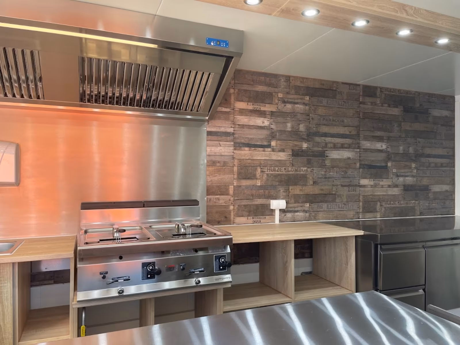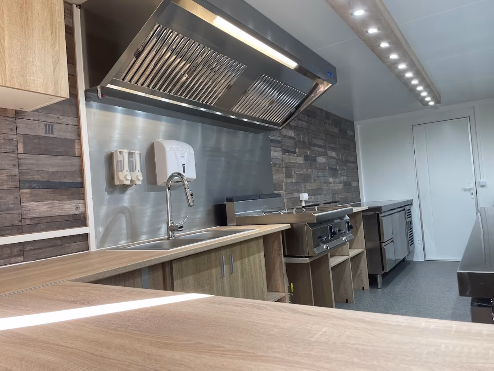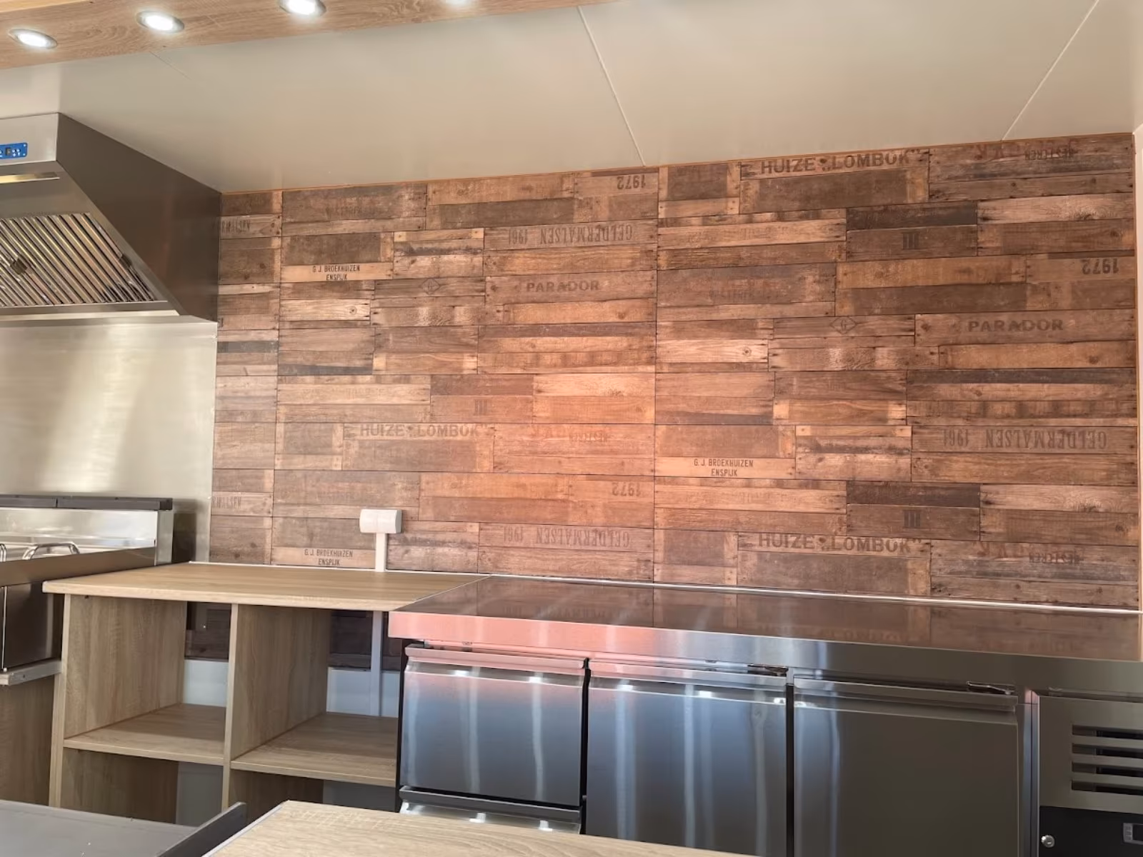– Holzoptik Arbeitsflächen in der Fahrtrichtung rechts,