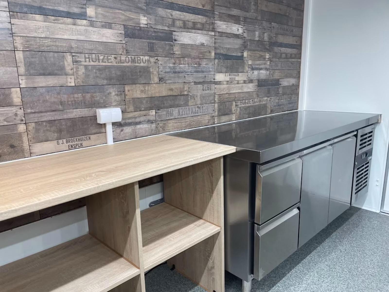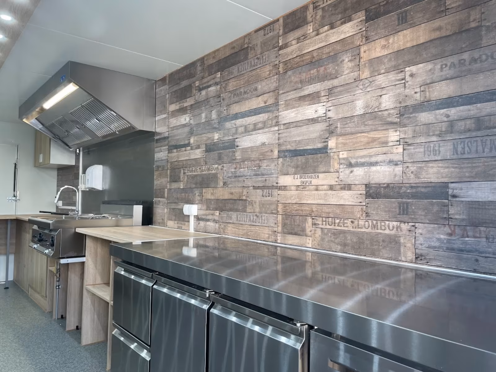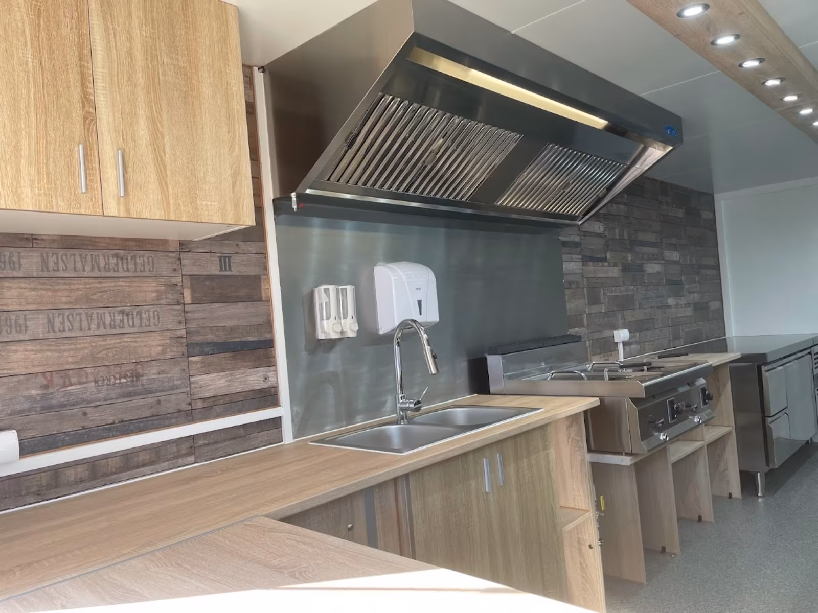 – Holzoptik Arbeitsflächen in der Fahrtrichtung rechts,